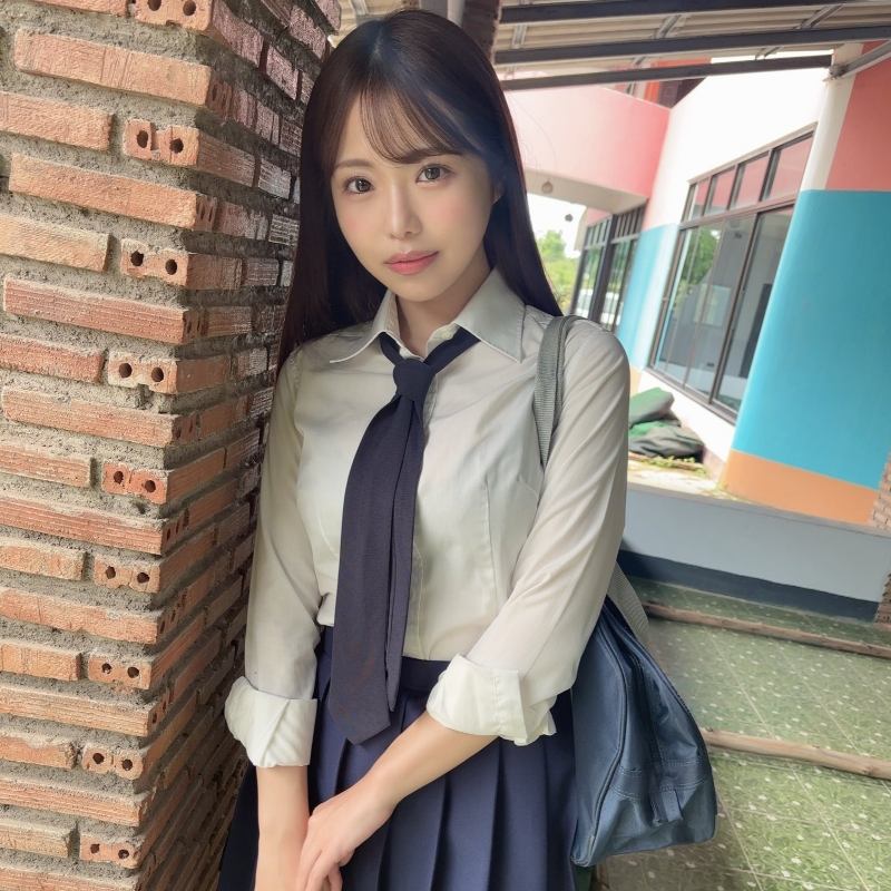早坂ひめ ネクタイと紺色プリスカの制服画像