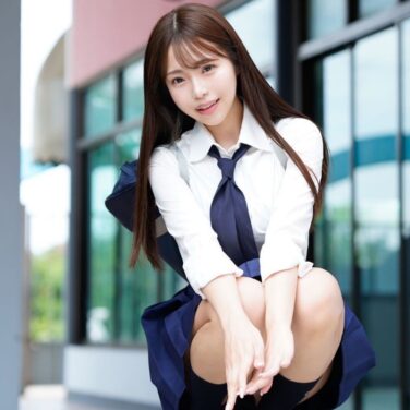 早坂ひめ 紺色ネクタイとソックスのプリスカ制服画像