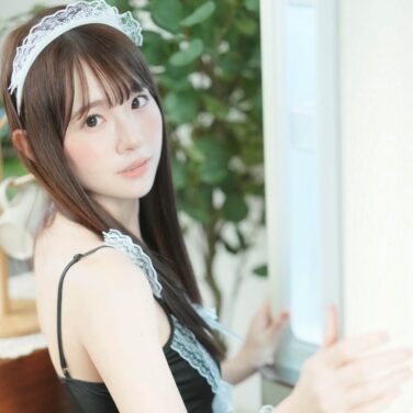 白上咲花 モノトーンのメイド服コスプレ画像